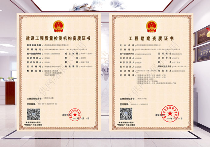 武漢固地鼎興工程技術有限公司成立于2014年11月,是國家高新技術企業(yè)、同時也是中國地質大學(武漢)工程學院產學研基地,是一家專門從事工程物探、水文勘察、工程檢測、監(jiān)測(自動化)、地震評價等業(yè)務的綜合性公司。目前公司持有湖北省市場監(jiān)督管理局頒發(fā)的CMA計量認證證書(地基基礎工程檢測、主體結構工程現場檢測、室內環(huán)境檢測),湖北省住房和城鄉建設廳頒發(fā)的建設工程質量檢測機構證書,巖土工程勘察、設計、物探測試檢測監(jiān)測資質,以及勞務類(鑿井、工程鉆探)資質,同時也是地震安全性評價官方授權從業(yè)單位...